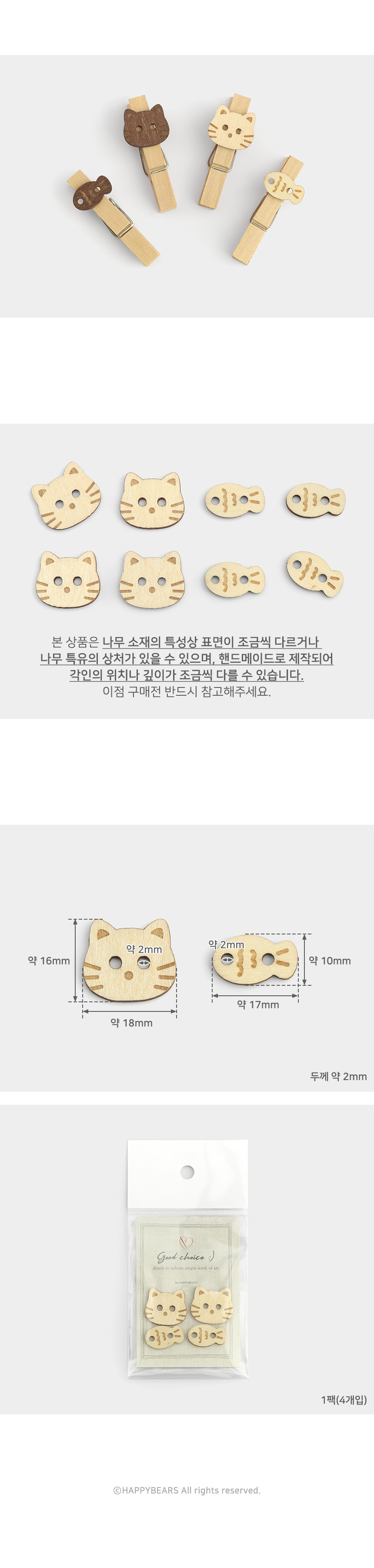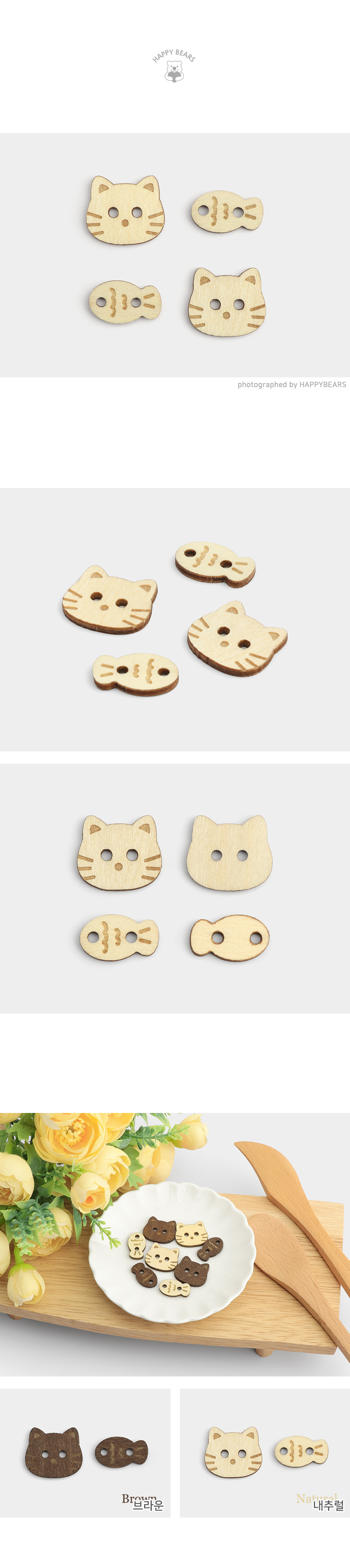 Cat & Fish Wooden Button Set